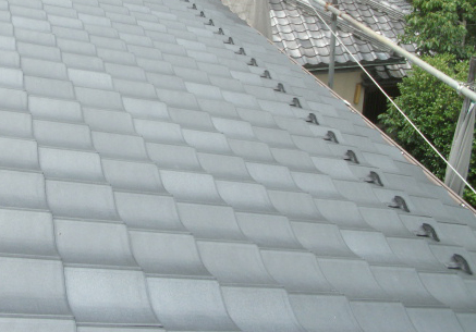 【京都市山科区】「雪止め金具」とは、屋根に積もった雪が、すべり落ちないようにするために雪を引っ掛けるための部材です。